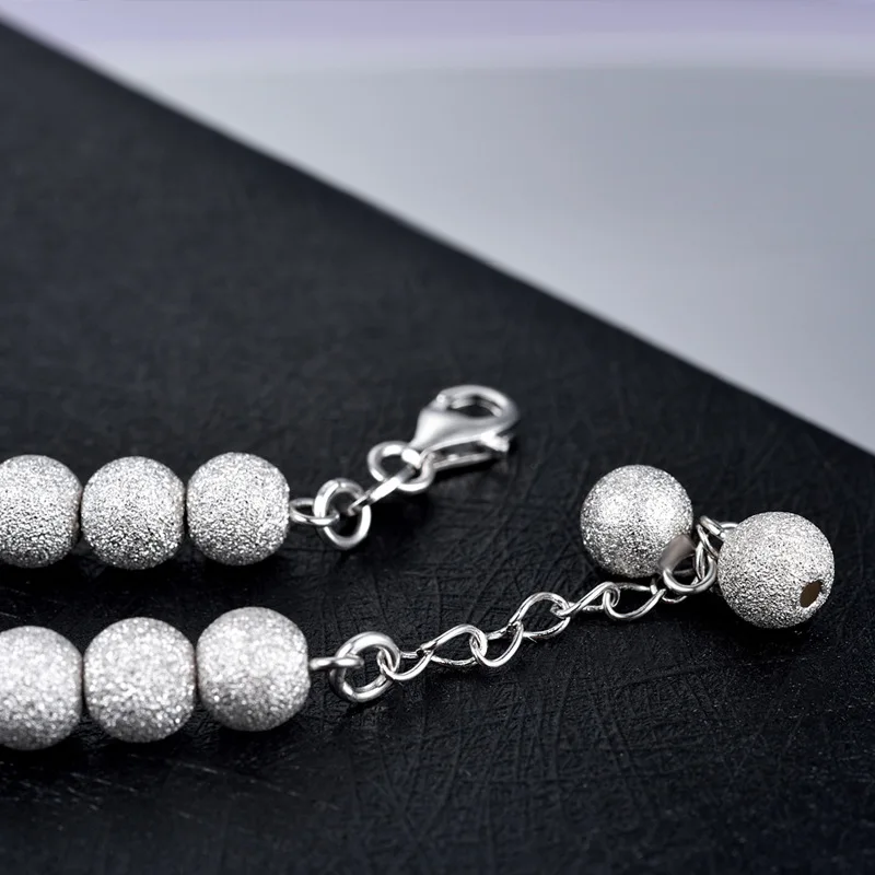 REVIEW TOP SELLER YJ00151 New Fashion S925 Pure Silver Ornaments Female Simple Round Bead Frosted Bracelet Temperamen