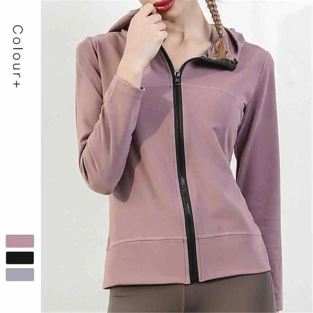 HOT Sale Autumn and Winter New Yoga Sports Jacket Ladies Stretch Zipper Running Fitness Hooded Jacket Long S