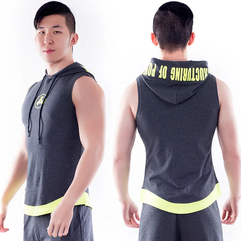 2018 New Men's Fitness Workout Vest With Hat Sleeveless Running T-shirts Outdoor Training Sport Qui