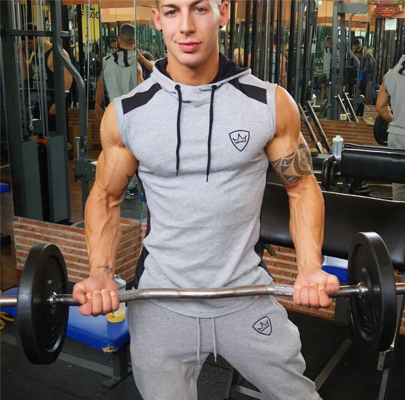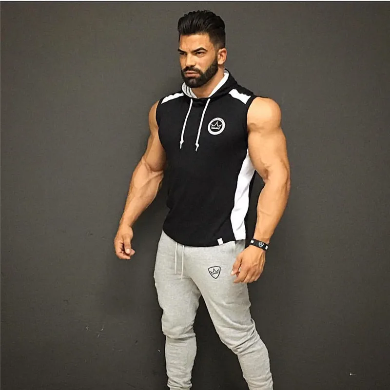 BEST Muscle Brother Men Fitness Hooded Sports Vest-Style Slim Fit Sleeveless Running Training Casual Ves