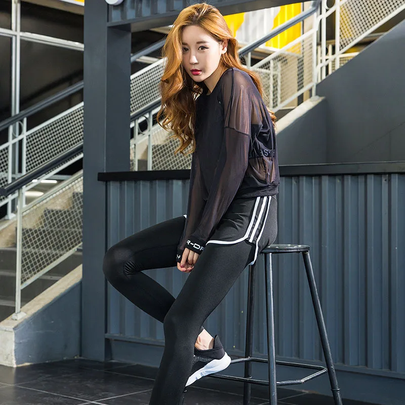 South Korea Gymnasium Long Sleeve Women's Mesh Eye Fitness Suit lady Running Loose Comfortable Quic